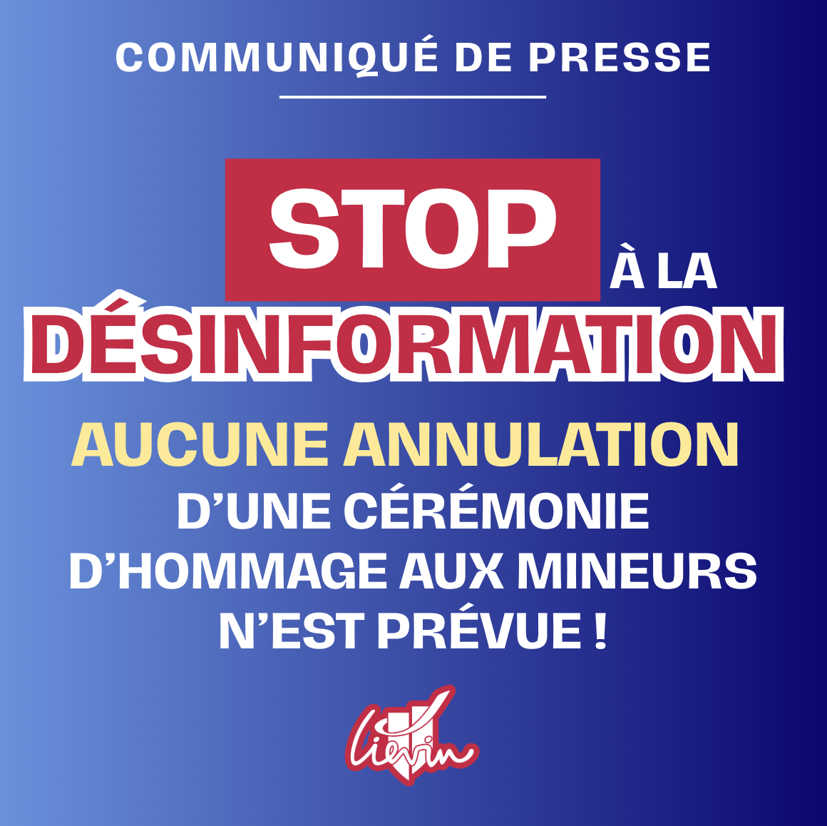 Contrairement aux mensonges des journalistes et de l’opposition, la Mairie de Liévin n’a jamais annulé une cérémonie d’hommage aux mineurs le 1er Mai prochain. Ce qui a été annulé, c’est une réunion politique en Mairie de certains syndicats d’extrême-gauche dont les revendications en 2026 n’ont rien à voir avec l’histoire glorieuse des mineurs.