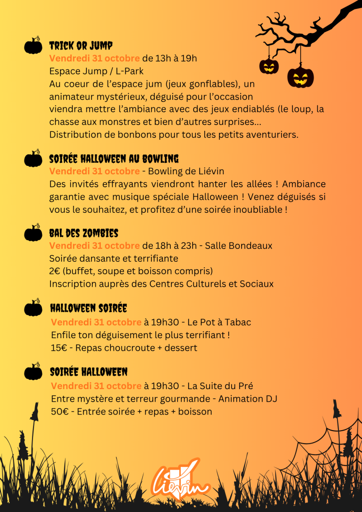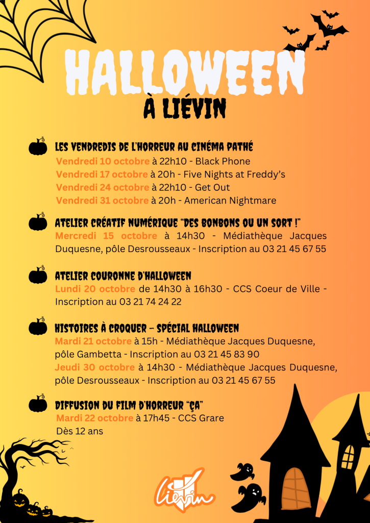 Alors qu'Halloween approche, la ville de Liévin vous propose un programme qui sèmera un vent de frayeur sur la ville ! Initiative privée ou organisation municipale, il y en aura pour tous les goûts aux quatre coins de la ville. Découvrez sans plus attendre le programme :